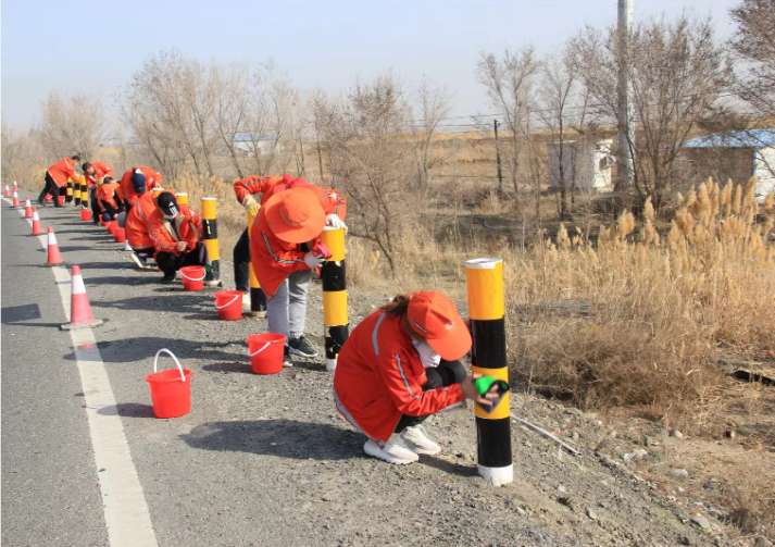 ——石河子公路管理局沙灣分局組織機關(guān)干部刷新沿線設(shè)施 提升公路顏值
