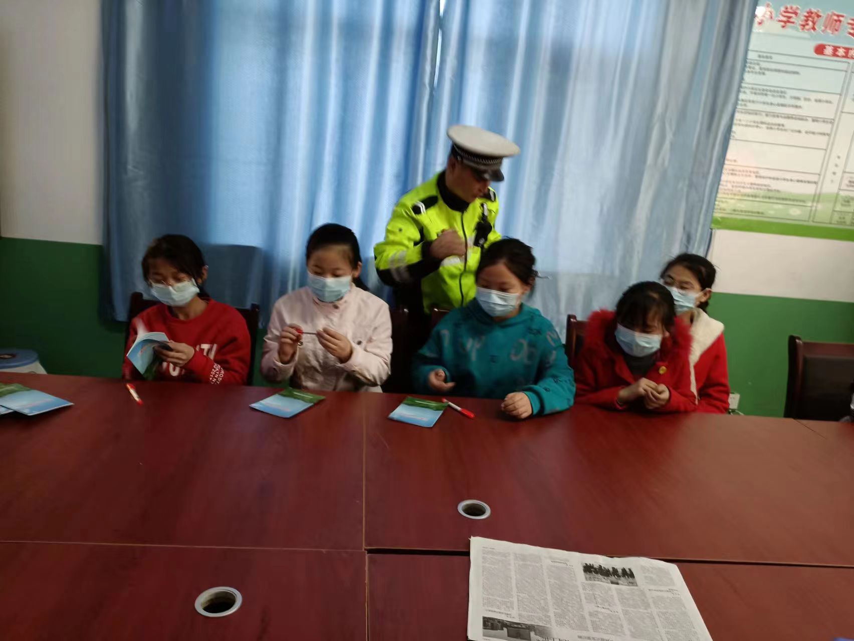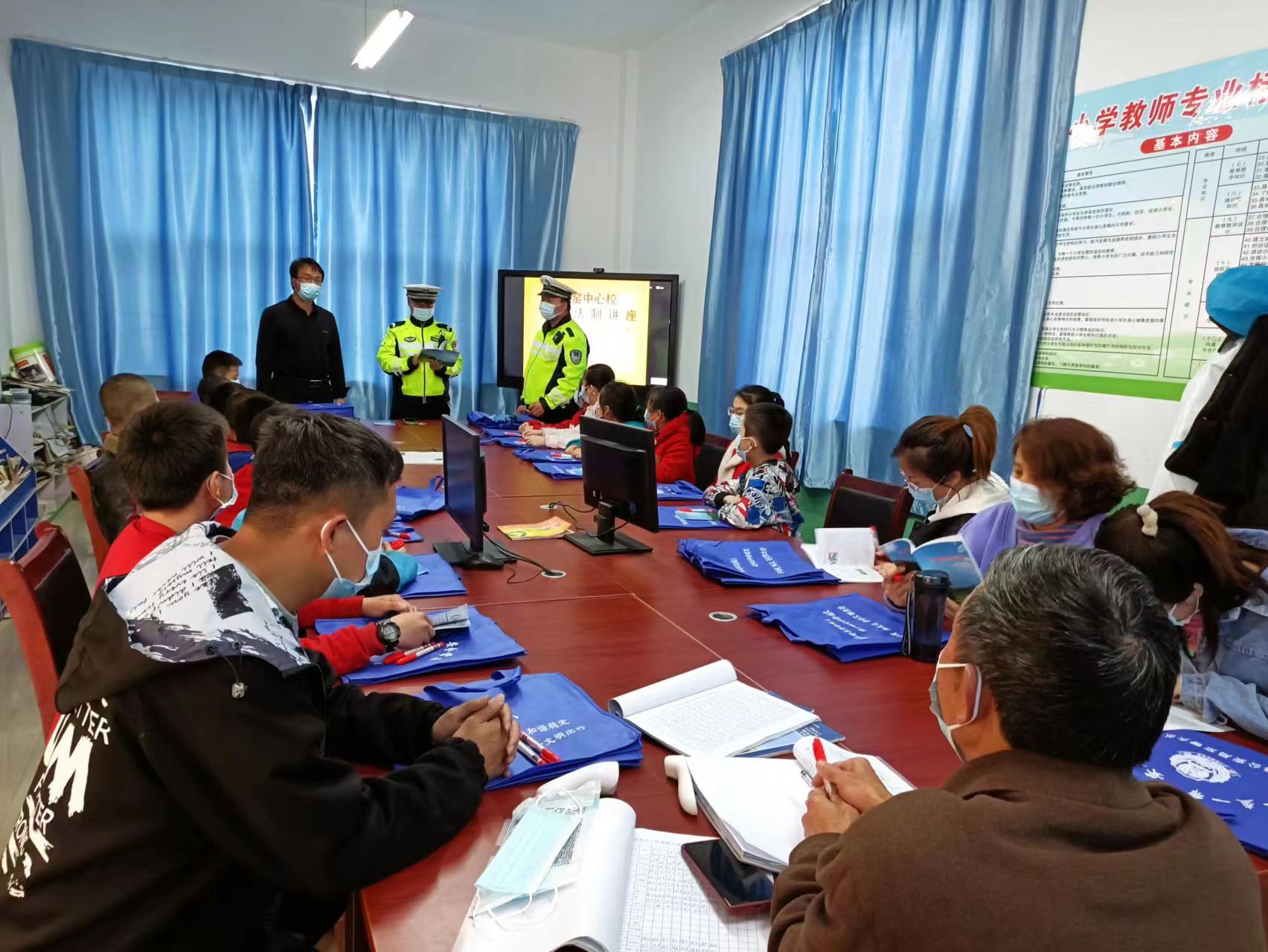 為了進(jìn)一步落實(shí)安全知識(shí),在活動(dòng)的最后,中隊(duì)民警為全體師生發(fā)放了交通安全宣傳手冊(cè)、紀(jì)念筆及安全手袋等。