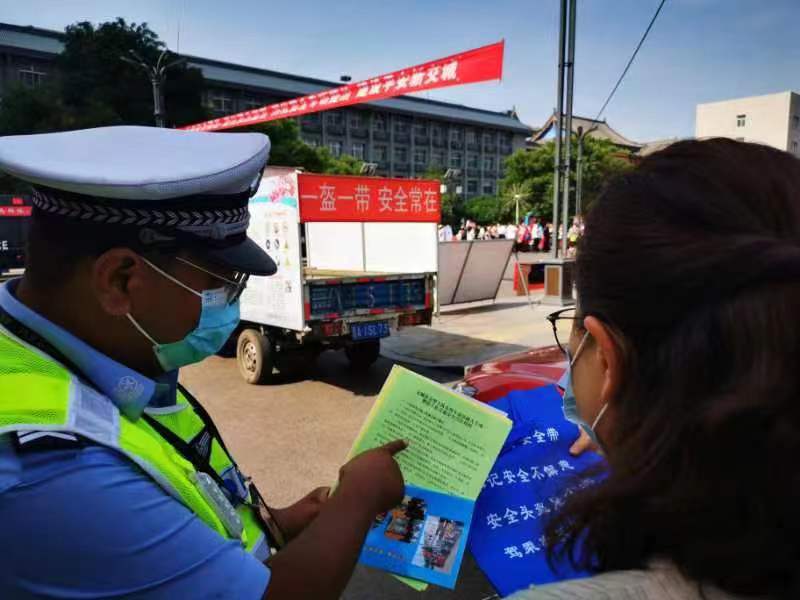 活動中,交城交警大隊以“安全生產(chǎn)月宣傳咨詢?nèi)?rdquo;活動為契機,設(shè)立宣傳咨詢臺,擺放宣傳展板、張貼宣傳海報,向群眾發(fā)放“一盔一帶”、“禁止三輪車違法載人”等宣傳資料,結(jié)合身邊發(fā)生的典型交通事故案例向群眾講解交通安全的重要性和交通違法行為帶來的危害。重點講解農(nóng)用車、三輪車違法載人的危害性,駕乘人員佩戴安全頭盔,系安全帶的重要性,讓人民群眾養(yǎng)成良好的交通出行習(xí)慣,為廣大交通參與者營造良好一個良好的道路交通環(huán)境。