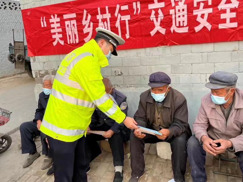 民警、交通協(xié)管員在該村人流量大的十字路口、商店、村委向村民散發(fā)交通安全宣傳資料,向大家宣傳近期開展的電子駕駛證申領(lǐng)事項(xiàng),與村民面對(duì)面交談,結(jié)合近期發(fā)生的事故,向村民講述交通安全的重要性,告誡大家為了自己和他人的健康,摒棄酒駕、超速等違法行為,遵守交規(guī),平安出行。