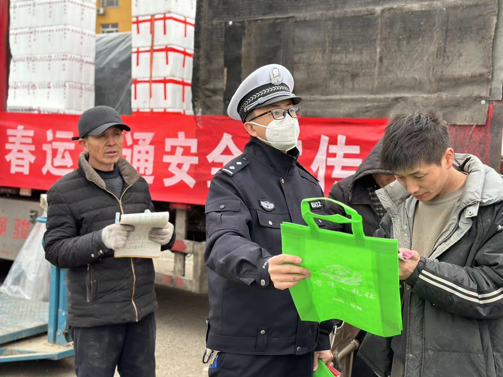 春節(jié)的腳步漸漸臨近,年味兒也越來越濃。為做好2023年春運期間道路交通安全管理工作,保障轄區(qū)內道路交通安全暢通。近日,汾陽交警大隊宣教股以“平安春運 交警同行”為主題走進轄區(qū)菜市場開展春運交通安全宣傳。民警通過發(fā)放宣傳單頁和面對面講解等形式,提醒他們在春運期間人流、車流、物流疊加的這個時間節(jié)點更加要遵守交通規(guī)則,安全文明出行。在春節(jié)親朋聚餐時,要時刻牢記“開車不喝酒,酒后不開車”,不要向駕車人勸酒、敬酒,摒棄交通陋習,共同營造文明、安全的道路交通環(huán)境。