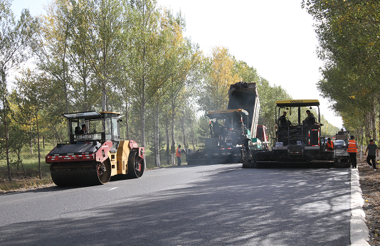 9月19日,內(nèi)蒙古敖漢旗國道111 線養(yǎng)護(hù)工程施工現(xiàn)場,大翻車、鋪路機(jī)、壓路機(jī)一派繁忙,在進(jìn)行瀝青路面鋪設(shè),預(yù)計“國慶”前完工通車。