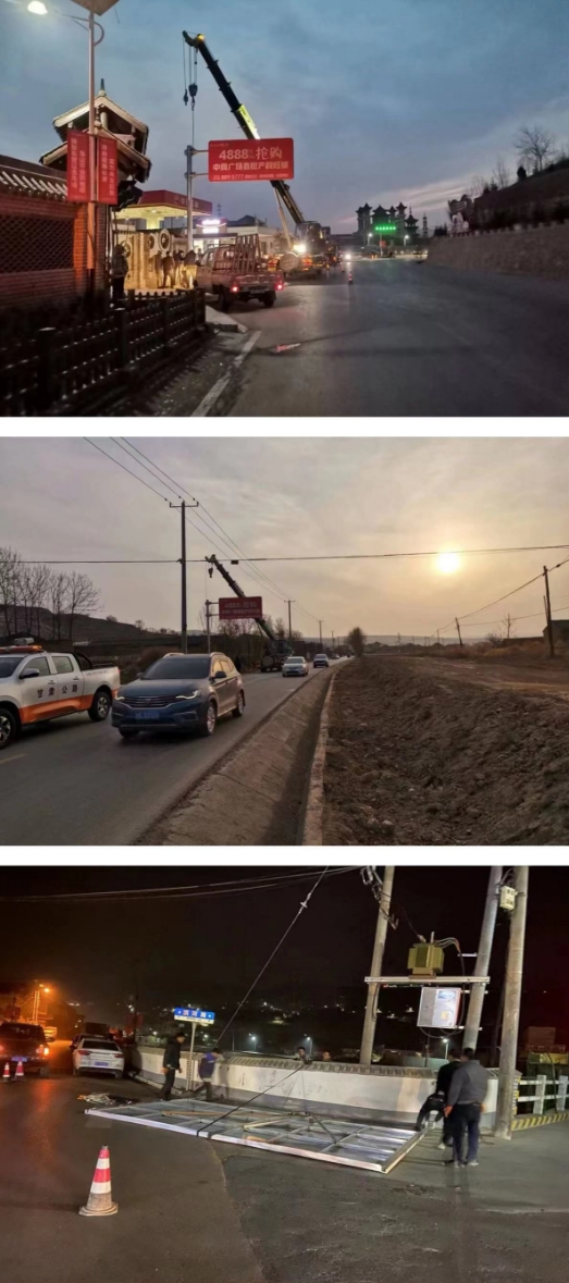 1月25日,張家川公路段巡查人員發(fā)現(xiàn)某開發(fā)商在S221 線涇石公路K131+500m、K135+000m、K135+500m分別設(shè)置了三處非公路廣告牌,影響行車視距,存在安全隱患。