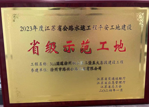 近日,在江蘇省交通運(yùn)輸廳、省應(yīng)急管理廳、省總工會(huì)三部門聯(lián)合發(fā)布的2023年度全省公路水運(yùn)工程平安工地建設(shè)省級(jí)“示范工地(工程)”公示名單中,311國道徐州銅山區(qū)三堡至大彭段建設(shè)工程(徐州市外環(huán)公路西南環(huán)項(xiàng)目)榜上有名,獲得平安工地建設(shè)省級(jí)“示范工地”榮譽(yù)稱號(hào)。