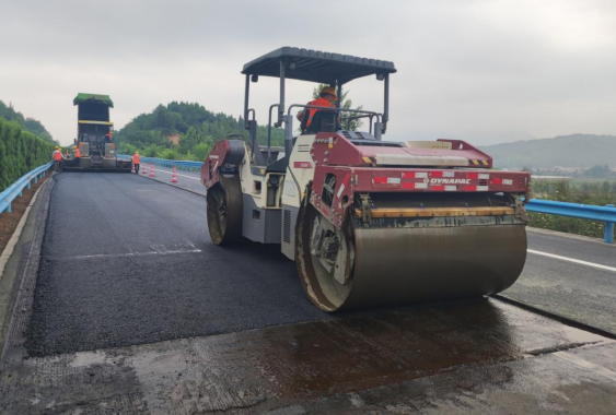 20日上午,專項(xiàng)工程施工隊(duì)伍轉(zhuǎn)戰(zhàn)麻安高速十堰段。進(jìn)入施工現(xiàn)場(chǎng),撲面而來的瀝青混凝土熱氣令人眩暈,銑刨機(jī)、攤鋪機(jī)、壓路機(jī)默契協(xié)同作業(yè),緩緩向前推進(jìn),正在對(duì)行車道實(shí)施道路面層銑刨攤鋪,養(yǎng)護(hù)工人們緊密跟進(jìn),及時(shí)對(duì)邊角處予以瀝青填補(bǔ)處理,伴隨著施工機(jī)械的轟鳴聲盡情的揮灑著汗水。