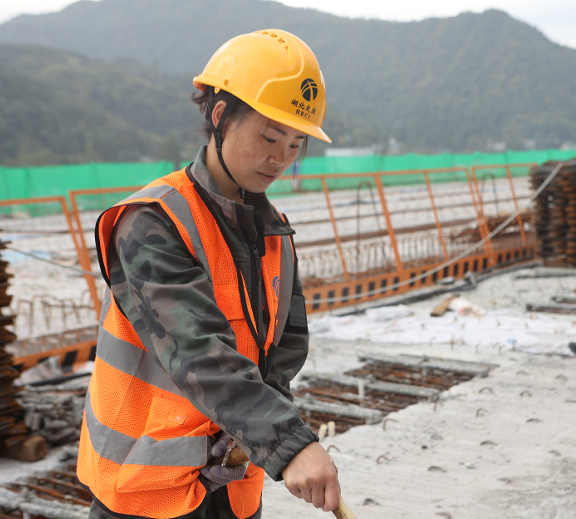 在利咸高速一標段建設現場,有一群“娘子軍”,如同鏗鏘玫瑰在工地綻放,她們扛鋼筋、擰螺絲、做防護……巾幗不讓須眉!其中,90后美女茍廣碧就是其中一道亮麗的風景線。她用青春和汗水,澆灌著正在修建的利咸高速。