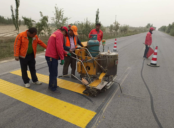 麥蓋提分局管養(yǎng)的省道215線K96至K163路段作為連接麥蓋提縣至三岔口的重要通道,距離上次施劃震蕩標(biāo)線已歷時(shí)5年,部分路段出現(xiàn)不同程度的中到重度磨損。為消除公路交通安全隱患,近日,麥蓋提分局對(duì)震蕩標(biāo)線輪跡帶磨損嚴(yán)重的省道215線K121至K143路段進(jìn)行重新修補(bǔ)施劃。震蕩標(biāo)線的修復(fù)有效提示了車(chē)輛減速和保持雨天、夜晚等視線不佳情況下的反光效果,有效改善了轄區(qū)路段的行車(chē)安全環(huán)境。