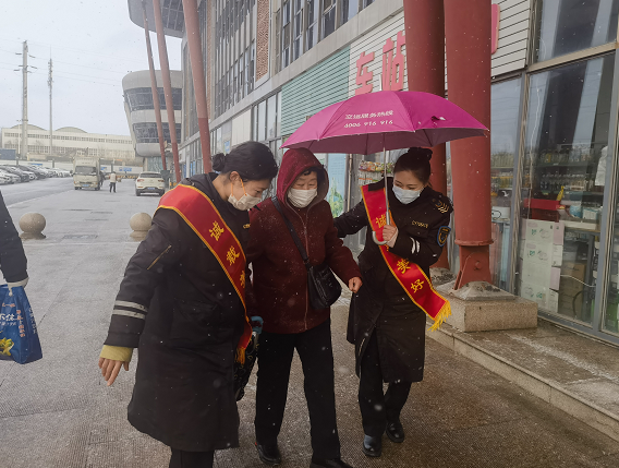 “我們老人出門最怕滑倒了,謝謝你扶我一把”,安娜帶領(lǐng)同事主動(dòng)走出去為旅客撐起傘擋雪,攙扶起上了年紀(jì)的旅客。經(jīng)過大家的努力,為旅客出行開出一條“平安路”,旅客行走不再“搖搖晃晃”。