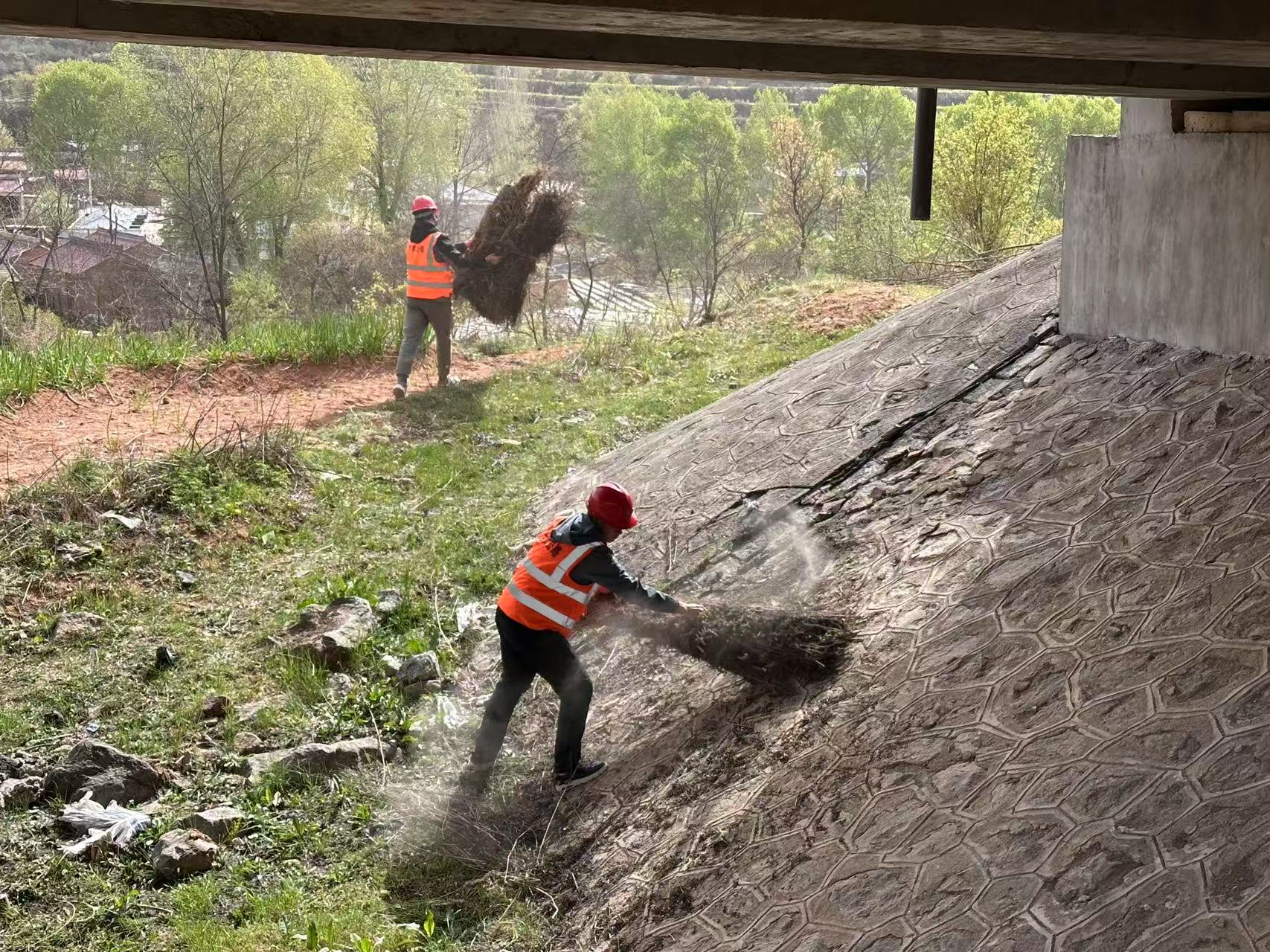 采取“人工+機械”的作業(yè)模式,全面清理公路邊坡拋灑物、雜物及垃圾堆積,確保路域環(huán)境干凈整潔。同時,對沿線交安設(shè)施進行清洗維修,修復(fù)破損邊溝、排水溝,清理淤塞邊溝,保障排水暢通;及時修剪公路沿線綠化植物,確保公路沿線干凈整潔。