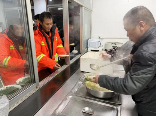 在保障前線作業(yè)的同時,后勤支撐也暖心到位。南京市公路中心繞城工區(qū)為掃雪除冰歸來的一線人員送上熱乎羊肉湯,用暖胃熱餐助力大家持續(xù)作戰(zhàn);寧馬收費站在安全島、階梯、衛(wèi)生間門口等位置鋪設麻布,收費車道同步開展人工撒布融雪劑作業(yè);各汽車客運站凌晨便組織員工開展掃雪除冰工作,為旅客出行掃清障礙。