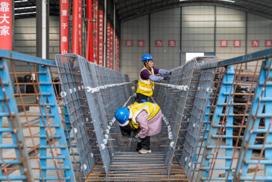 在項(xiàng)目預(yù)制梁場(chǎng),各作業(yè)區(qū)有序聯(lián)動(dòng)、高效運(yùn)轉(zhuǎn)。鋼筋加工區(qū)內(nèi),工人專(zhuān)注進(jìn)行焊接作業(yè),精準(zhǔn)綁扎成型;模板區(qū)內(nèi),技術(shù)人員嚴(yán)格檢查平整度與拼接精度,嚴(yán)把預(yù)制構(gòu)件基礎(chǔ)質(zhì)量關(guān);混凝土澆筑區(qū)內(nèi),攪拌車(chē)、輸送泵協(xié)同作業(yè),振搗密實(shí)、規(guī)范養(yǎng)護(hù)。存梁區(qū)內(nèi),100多片成品預(yù)制梁整齊排布,儲(chǔ)備充足、保障有力,為全線(xiàn)橋梁施工提供穩(wěn)定支撐。