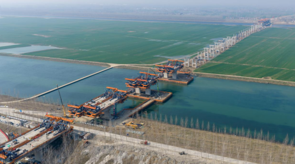 作為項(xiàng)目控制性工程,新沂河特大橋建設(shè)迎來(lái)關(guān)鍵突破。該橋全長(zhǎng)約2284米,目前懸澆梁施工已完成49%,數(shù)十臺(tái)大型機(jī)械與施工隊(duì)伍協(xié)同作戰(zhàn),計(jì)劃于今年6月實(shí)現(xiàn)合龍,為全線(xiàn)貫通奠定重要基礎(chǔ)。