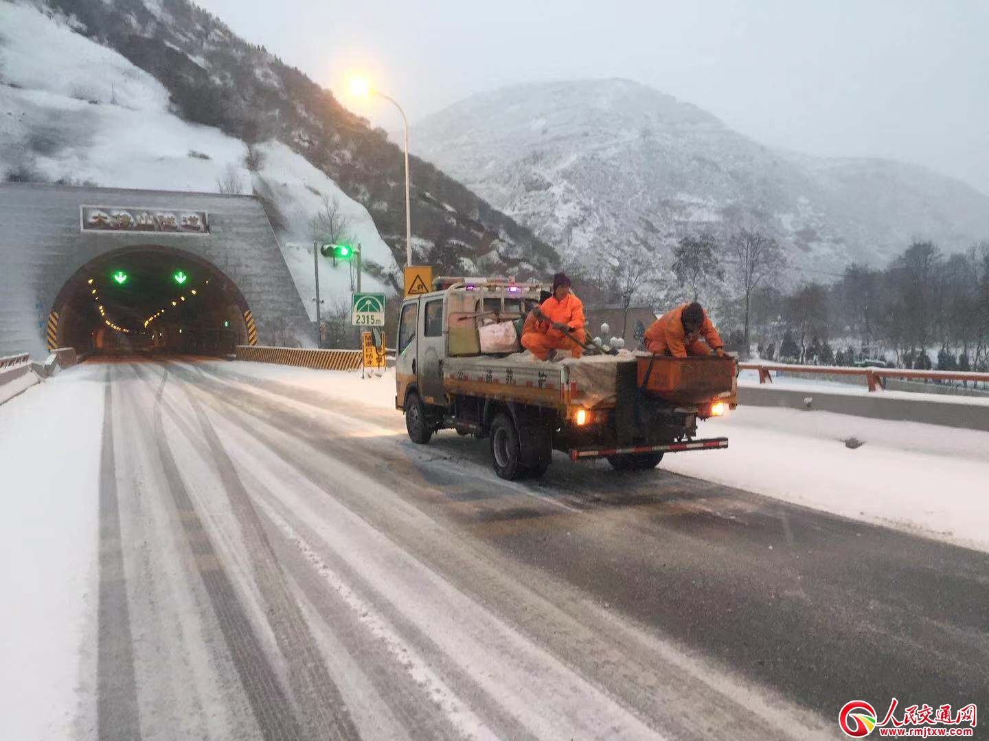 人民交通網(wǎng)訊(通訊員 胡澤庭)受較強(qiáng)冷空氣影響,12月27日,甘肅天水境內(nèi)出現(xiàn)中到大雪天氣,天水公路管理局高養(yǎng)中 心以雪為令,黨政主要領(lǐng)導(dǎo)一線指揮,組織人員機(jī)械設(shè)備上路除雪防滑。在G30線連霍高速寶天段和天定段,G310線天巉公路多功能除雪車全線撒鋪融雪劑推 雪除雪,人工配合小型融雪劑撒布機(jī)在急彎長大下坡、橋面、隧道進(jìn)出口等重點(diǎn)路段撒鋪融雪劑和防滑料,全面打冰除雪。