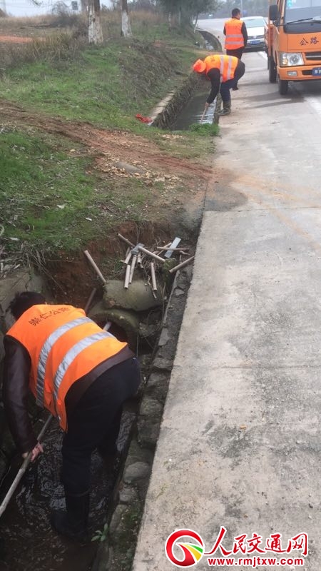 人民交通網(wǎng)訊(通訊員 萬光輝)今年以來,已經(jīng)連續(xù)下了將近2個(gè)月的雨了,為確保公路兩旁水溝、橋涵排水暢通,避免因淤塞、排洪不暢而導(dǎo)致的公路水毀,崇仁公路分局加大公路日常管養(yǎng)力度,積極開展組織一線養(yǎng)護(hù)人員對(duì)所轄管養(yǎng)公路兩側(cè)排水溝、涵洞及橋梁泄水孔的垃圾、雜草、石塊、枯草、淤泥進(jìn)行徹底清理,疏通堵塞的排水涵管,排除安全隱患。