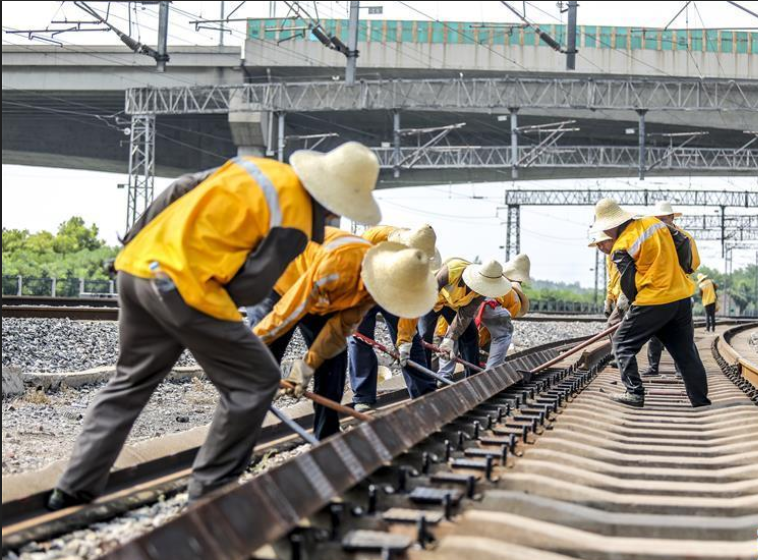 7月30日,天津工務(wù)段職工在更換鋼軌。