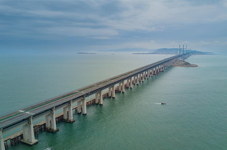 這是8月30日無人機(jī)拍攝的平潭海峽公鐵兩用大橋。 平潭海峽公鐵大橋是福州至平潭鐵路控制性工程,也是“十三五”規(guī)劃中北京至臺灣高鐵的先期工程。按計(jì)劃,大橋靜載試驗(yàn)于8月27日完成,9月初將完成靜態(tài)驗(yàn)收。大橋精調(diào)施工將在9月15日前完成,計(jì)劃9月中旬進(jìn)行聯(lián)調(diào)聯(lián)試。