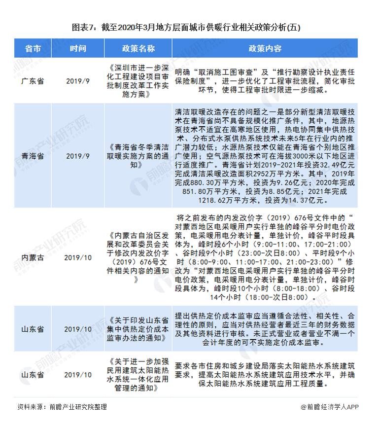 截至2020年3月各省市城市供暖行業(yè)政策匯總