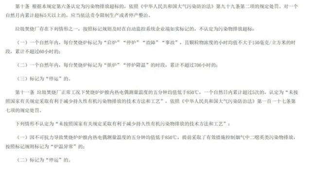 圖為《生活垃圾焚燒發(fā)電廠自動監(jiān)測數(shù)據(jù)應(yīng)用管理規(guī)定》第十條、第十一條規(guī)定