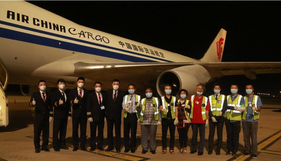 圖為當(dāng)?shù)貢r(shí)間2月5日,CA1002即將起飛回國(guó),國(guó)航南非分公司工作人員在機(jī)場(chǎng)向機(jī)組人員揮手告別。