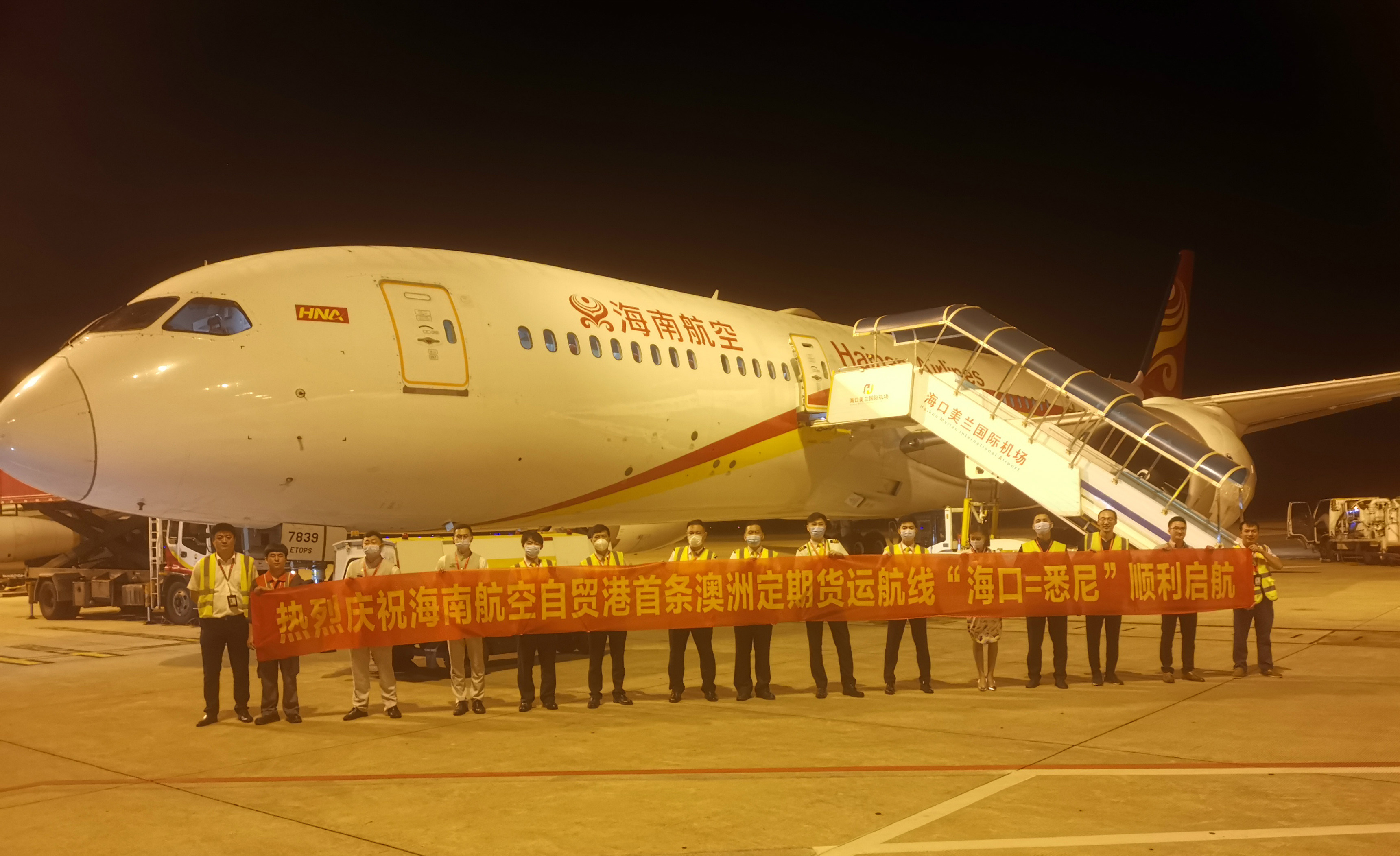 2021年6月9日,?--本報訊(通訊員 徐滔 作者單位 海南航空控股股份有限公司)6月9日凌晨1:10,海航集團旗下海南航空HU797航班裝載21.2噸貨物從?诿捞m國際機場起飛,將于當?shù)貢r間13:10抵達悉尼國際機場。本次航班載貨以普貨、電商貨為主。該航線由波音787-9機型執(zhí)飛,單程飛行時長10小時,每周三、四、日共三個往返航班。