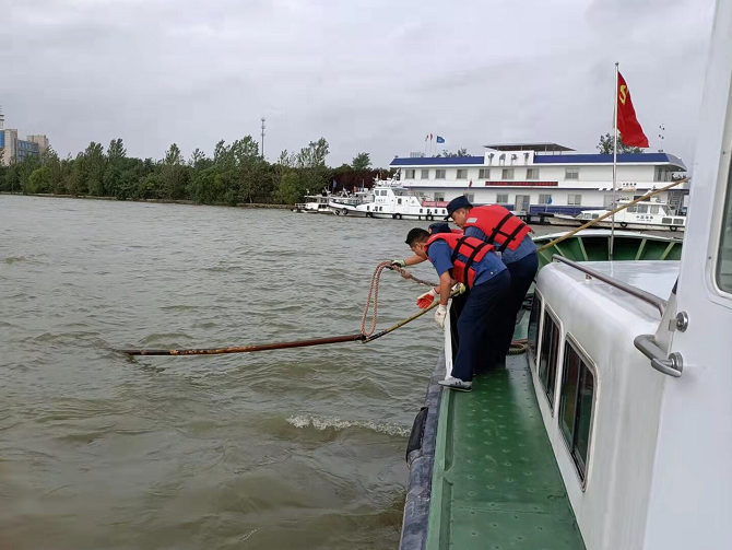 9月26日,該站宿豫航政大隊(duì)在巡航至皂河船閘上游黃口段航道時(shí),發(fā)現(xiàn)有數(shù)條長竹樁在水面漂流,對(duì)過往船舶航行安全構(gòu)成較大隱患。宿豫航政大隊(duì)黨員突擊隊(duì)立即組織打撈工作,駕駛?cè)藛T與打撈人員密切配合,不斷調(diào)整穩(wěn)定船舶位置,利用自制長鉤纏繞鉤住,迅速將長竹樁逐條打撈出水,并拖到岸邊,及時(shí)排除了航道安全隱患。