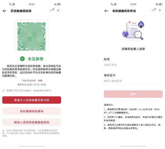 針對(duì)疫情期間沒有手機(jī)或不會(huì)使用健康碼的老人、兒童群體,快應(yīng)用提供防疫健康信息碼“老幼健康碼助查詢”服務(wù),支持60歲以上(含60歲)和16歲以下(含16歲)人群使用健康狀態(tài)查詢服務(wù)。助查人可通過姓名和身份證號(hào)為老人、兒童進(jìn)行健康狀態(tài)查詢,且助查人手機(jī)端不保存任何緩存信息和數(shù)據(jù),保障老人和兒童的個(gè)人隱私不被泄露。