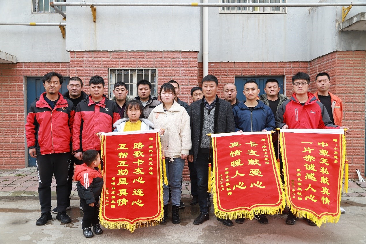 2021年2月26日,卡車司機互助保障計劃第152、153、154、155起互助案例在山西呂梁、山東濟寧、山東臨沂完成線下慰問,卡友地帶工作人員和當?shù)胤侄鏌嵝目ㄓ、愛心企業(yè)中策橡膠一起為這四個家庭各自送上30萬互助金,為他們走出困境,貢獻一份力量。