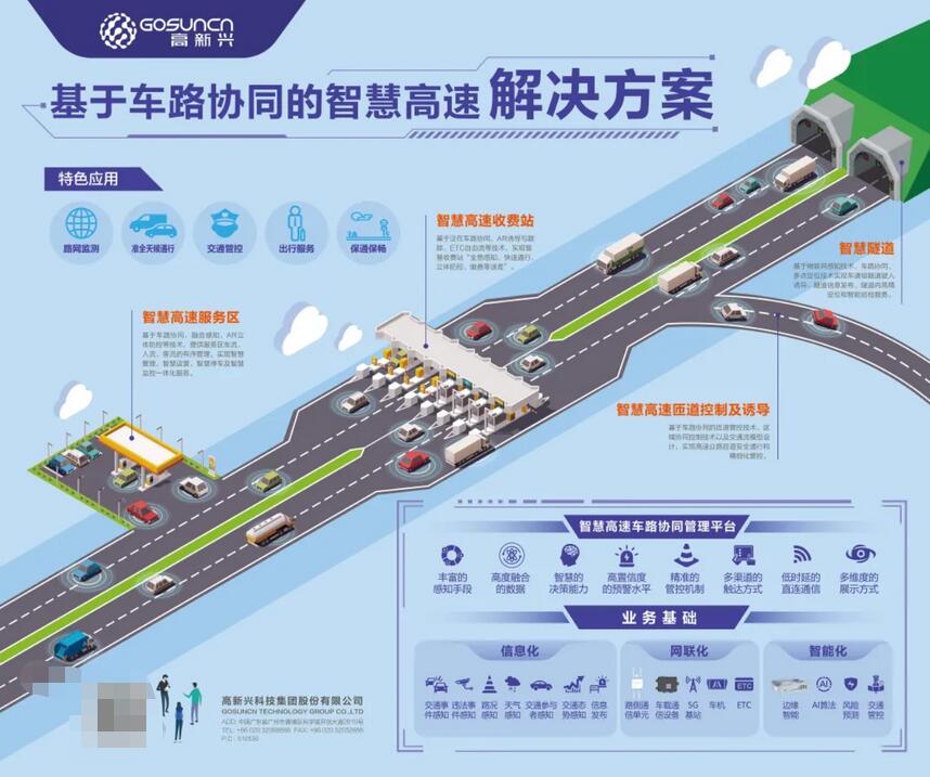 本次大會期間,針對高速公路服務區(qū)、收費站、匝道分合流、隧道四大特定場景,高新興推出“基于車路協(xié)同的智慧高速解決方案”。