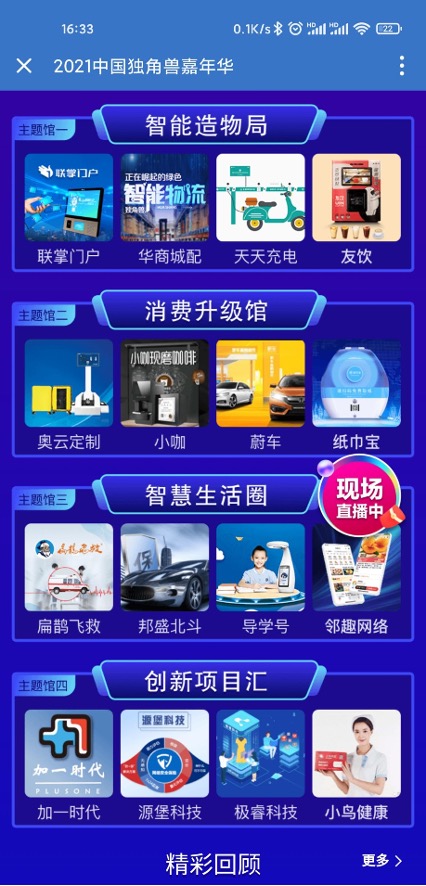 于此同時,由中國商業(yè)聯(lián)合會、中國產(chǎn)業(yè)發(fā)展促進(jìn)會、胡潤百富、天九共享集團(tuán)共同主辦的“2021中國獨(dú)角獸嘉年華”也于上周在線上正式開幕。四大直播主題館——智能造物局+消費(fèi)升級館+智慧生活圈+創(chuàng)新項(xiàng)目匯已從9日起陸續(xù)登場。而“2021中國瞪羚企業(yè)·未來獨(dú)角獸評選活動”首批優(yōu)秀企業(yè)巡禮路演也正是通過四大主題直播館中的“創(chuàng)新項(xiàng)目匯”展示給全國企業(yè)家。