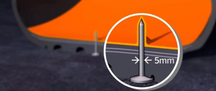 中橡狼牌噴涂自封式輪胎技術(shù)是由中國橡膠行業(yè)泰斗、中國輪胎專家組組長、原北京橡膠設(shè)計院副總工程師、中橡狼牌輪胎首席技術(shù)總監(jiān)——“陳志宏”教授(享受國務(wù)院津貼)為核心的科研團(tuán)隊研發(fā)設(shè)計的可自行修補(bǔ)胎面損傷的技術(shù),它與普通輪胎的區(qū)別就是內(nèi)部有一層粘性高分子納米記憶涂層——當(dāng)直徑不超過5毫米的異物(如鐵釘)刺穿胎面時,這一獨(dú)特技術(shù)可立即將刺穿處密封,防止漏氣和爆胎。在這一技術(shù)加持下,即使異物脫離或被人為拔除,輪胎上刺穿的小洞仍可被密封。這樣可確保車輛扎釘后繼續(xù)行駛,無需被迫停下或停至路邊更換輪胎,起到與傳統(tǒng)防爆輪胎相似的作用。如圖所示: