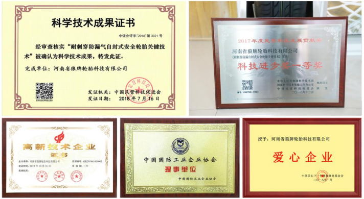 匠心不負(fù)光陰,品質(zhì)不負(fù)初心。經(jīng)過4年的發(fā)展,在熊國武先生的帶領(lǐng)下,排除萬難,革故鼎新,如日方升。河南省狼牌輪胎科技有限公司已成為《涂覆式刺扎自密封輪胎》國家標(biāo)準(zhǔn)的主要起草制定單位,中橡狼牌噴涂自封式輪胎技術(shù)也已獲得國家科學(xué)技術(shù)部授權(quán)設(shè)立、中國民營科技促進(jìn)會頒發(fā)的“科技進(jìn)步獎一等獎”和“耐刺穿防漏氣自封式安全輪胎關(guān)鍵技術(shù)”科學(xué)技術(shù)成果證書,依托此項技術(shù)生產(chǎn)的中橡狼牌系列輪胎“耐扎防漏、靜音舒適、安全降爆”,高溫可承受120攝氏度、低溫可承受-40攝氏度,質(zhì)保3年或5萬公里,產(chǎn)品綜合性能已通過吉尼斯世界紀(jì)錄大型活動賽事的驗證,輪胎扎6000次不漏氣不爆胎,并能適應(yīng)多種復(fù)雜氣候和路況下的行駛條件。除此之外,中橡狼牌輪胎也已獲得公安部軍警產(chǎn)品認(rèn)證、ISO9001質(zhì)量管理體系認(rèn)證、武器裝備質(zhì)量管理體系認(rèn)證以及包括國家橡膠輪胎質(zhì)量監(jiān)督檢驗中心等在內(nèi)的多家權(quán)威機(jī)構(gòu)認(rèn)證,通過了270Kmh帶螺紋釘高速性能測試(達(dá)到國際標(biāo)準(zhǔn)),品質(zhì)安全有保障,致力于打造輪上安全中國。(通訊員/ 陳志謙)
