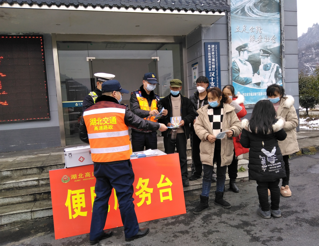 自春運(yùn)以來,漢十支隊(duì)第六大隊(duì)聯(lián)合多部門在沿線收費(fèi)站口、執(zhí)法站點(diǎn)開設(shè)便民服務(wù)臺(tái),向廣大司乘人員提供出行指南、開水、修車工具、應(yīng)急藥品和防疫物資等,盡最大努力為司乘提供更加細(xì)致、周到的服務(wù),讓群眾切體會(huì)到家的“溫暖”。