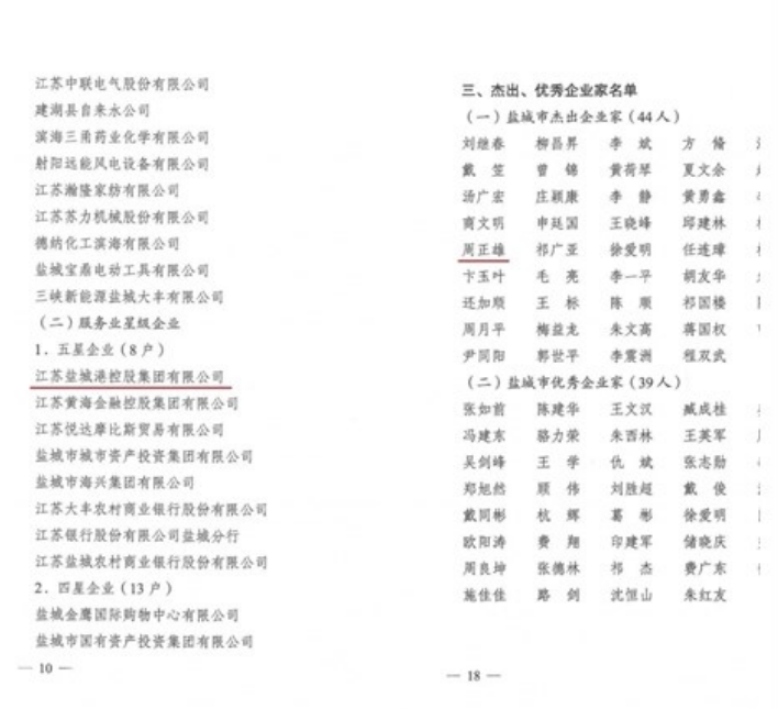 江蘇鹽城港控股集團(tuán)榮獲“服務(wù)業(yè)五星企業(yè)”,集團(tuán)黨委書記、董事長、總經(jīng)理周正雄榮獲“鹽城市杰出企業(yè)家”榮譽(yù)稱號(hào)!