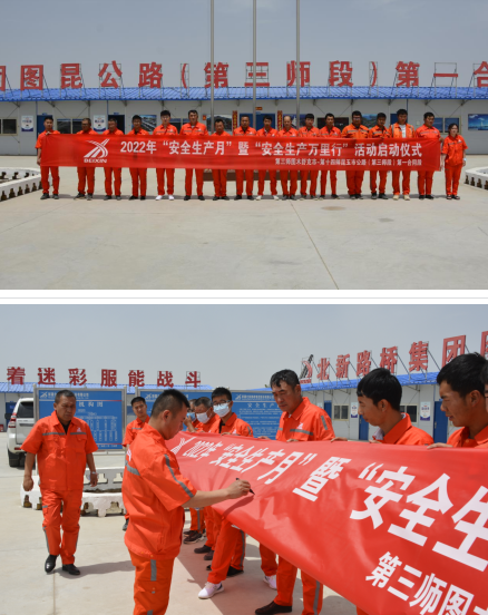 5月28日上午,在第21個(gè)全國“安全生產(chǎn)月”來臨之際,為進(jìn)一步夯實(shí)項(xiàng)目部安全管理工作、增強(qiáng)人員安全意識、鞏固和保持項(xiàng)目部良好的安全生產(chǎn)氛圍和安全生產(chǎn)態(tài)勢,北新路橋集團(tuán)圖昆公路(三師段)一標(biāo)項(xiàng)目舉行了 “安全生產(chǎn)月”活動啟動儀式,圖木舒克分公司黨支部書記董軍,項(xiàng)目管理人員20余人參加了本次活動。