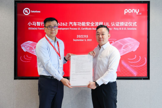 9月5日,小馬智行獲得第三方認(rèn)證機構(gòu)UL Solutions頒發(fā)的ISO 26262:2018 汽車功能安全ASIL-D流程認(rèn)證證書,這意味著小馬智行在推動自動駕駛技術(shù)量產(chǎn)化、規(guī)模化的進程中再次取得重要進展。