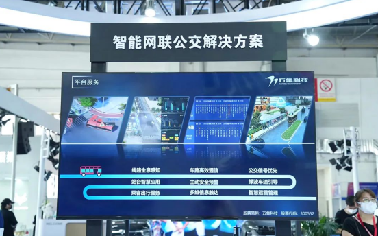 萬集展出厘米級(jí)精度還原道路及車輛信息的全息路口解決方案,是車路協(xié)同綜合解決方案場(chǎng)景之一,該系統(tǒng)能夠?qū)崿F(xiàn)對(duì)路口的全息態(tài)勢(shì)感知、研判分析、信號(hào)自適應(yīng)優(yōu)化、多維度信息發(fā)布等功能,為公安交通管理部門提供數(shù)字化全息視角,助力城市交通便捷化、文明化、低碳化發(fā)展。同時(shí),車路協(xié)同解決方案還能夠?yàn)橹悄芫W(wǎng)聯(lián)公交車、無人駕駛出租車、無人物流配送車、無人環(huán)衛(wèi)清掃車等不同應(yīng)用提供全方位的車路協(xié)同綜合服務(wù)。