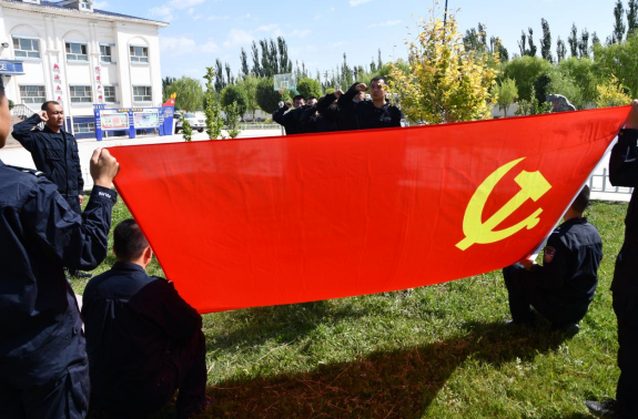 派出所民警對黨旗宣誓