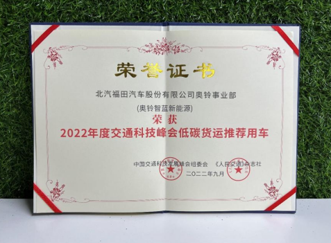 就是這樣,奧鈴在中國的汽車市場上走出了一條新路子,F(xiàn)在,奧鈴已構(gòu)建起全球最先進的M4輕卡新能源產(chǎn)品平臺,并聯(lián)合寧德時代、精進電機、理工華創(chuàng)全球頂級的三電行業(yè)供應鏈,建立了純電動、混動、氫燃料輕卡三大矩陣,全面滿足快遞物流、專業(yè)運輸?shù)?0多個細分行業(yè)以及多用途輕卡運輸市場的需求。為了更好開拓新能源輕卡市場,在了解到不同細分場景中的用戶需求的基礎上,奧鈴組織研發(fā)團隊與一線營銷人員通過對城市配送、冷鏈運輸、環(huán)衛(wèi)等作業(yè)特點的挖掘,進一步了解市場用戶對新能源輕卡的期待和顧慮,以快速迭代的產(chǎn)品、細致到位的服務,不斷滿足市場需求。奧鈴智藍新能源也憑借率先完成的技術(shù)積累、示范性運營和商業(yè)化成熟應用,將先發(fā)優(yōu)勢轉(zhuǎn)化為了領(lǐng)先優(yōu)勢,不僅在新能源輕卡行業(yè)名列前茅,也積累下良好的市場口碑。因此,在2022第三屆中國交通科技發(fā)展峰會上,作為中國商用車輕卡行業(yè)的代表企業(yè),福田奧鈴憑借在新能源領(lǐng)域的技術(shù)突破與商業(yè)化落地,榮獲實踐“交通領(lǐng)域碳達峰”目標的重要助力,獲得“2022年度交通科技峰會低碳推薦用車”獎。