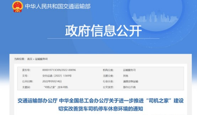 前不久,交通運輸部、中華全國總工會發(fā)布《關于進一步推進“司機之家”建設切實改善貨車司機停車休息環(huán)境的通知》,指導“司機之家”建設運營單位結合貨車司機實際需求,不斷拓展“司機之家”服務網(wǎng)絡,健全完善服務功能,切實改善停車休息環(huán)境和條件,關心關愛從業(yè)人員,營造良好的從業(yè)就業(yè)環(huán)境。