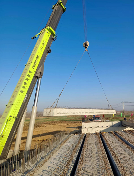 11月5日,在青島西海岸新區(qū)王臺街道東漕汶大橋施工現(xiàn)場,隨著最后一片20米長、重達(dá)39.8噸的預(yù)應(yīng)力混凝土空心板徐徐落下,大橋81片梁板全部吊裝完畢,預(yù)示著橋梁主體結(jié)構(gòu)完工。