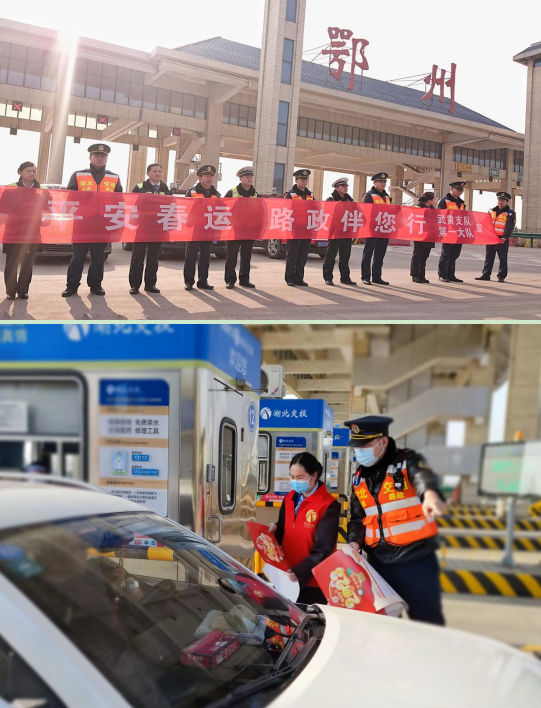 1月7日春運(yùn)首日,湖北交投武黃運(yùn)營(yíng)公司鄂州管理所聯(lián)合高速交警、路政,在G50滬渝高速公路鄂州收費(fèi)站開(kāi)展2023年春運(yùn)啟動(dòng)儀式,為司乘提供“暢、安、舒、美”的通行環(huán)境,攜手護(hù)航春運(yùn)回家路。