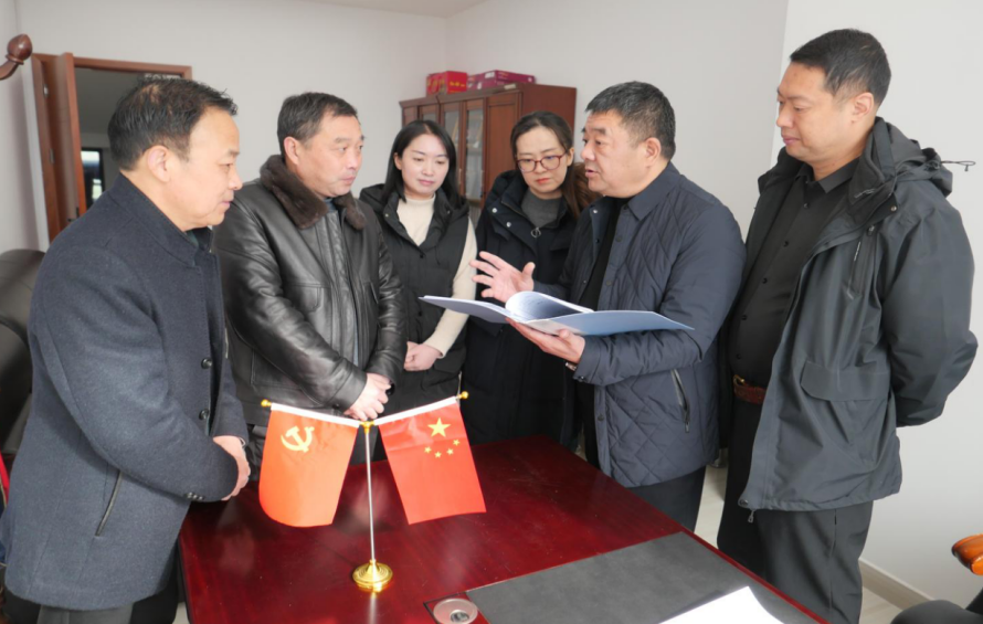 (信陽市平橋區(qū)司法局局長余耀(右二)同領(lǐng)導班子成員在安排布置2O23年第一季度工作時的情景)