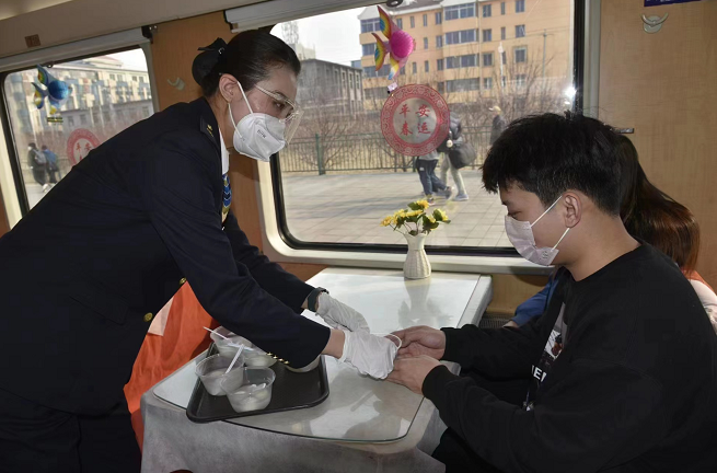 汽笛聲聲,為團圓點贊;車輪滾滾,與歡樂同行。在列車上以聯(lián)歡的方式與旅客一起過節(jié),為旅客營造溫馨祥和的旅途氛圍,已經(jīng)成為大連客運段的傳統(tǒng)和“保留節(jié)目”了。僅2023年以來,大連客運段分別在元旦、春運首日、小年和除夕夜等節(jié)日以不同慶祝主題與旅客共慶佳節(jié)。春運返程客流高峰已經(jīng)來到,大連客運段全體乘務人員將繼續(xù)堅守崗位、真誠服務,致力于為旅客營造美好旅途,在千里鐵道線上打造列車節(jié)日文化,在每個重要日子里與您溫馨相伴。(曲曉玉)