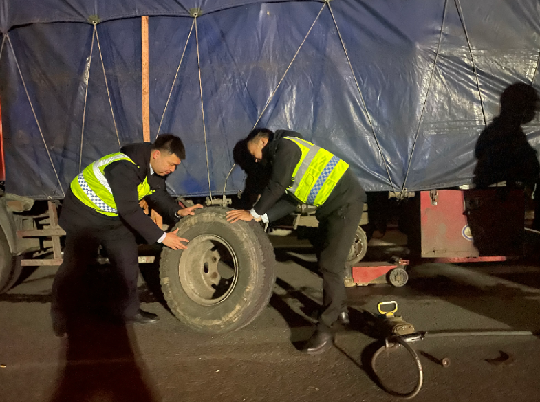 經(jīng)了解得知,該車從河南運輸一批貨物需要在快速送往陜西省安康市,因長時間行駛導(dǎo)致在高速公路行駛過程中車輛左后方輪轂破裂,無法正常行駛,存在極大的安全隱患。司機告知自己是外地人,此次因車輛故障不得不從就近收費站下站,鄂西北運營公司鄖陽東收費站值班人員寧元亮查看后發(fā)現(xiàn)輪轂已經(jīng)變形,無法維修只能更換,考慮到更換輪轂需要專業(yè)設(shè)備,立即聯(lián)系當(dāng)?shù)鼐S修人員。直到當(dāng)晚19時,“移動維修站”到達現(xiàn)場,收費站當(dāng)班收費員寧元亮、王何震宇、卜炎炎等人共同協(xié)助將破損的輪胎換下,隨后與地方維修人員共同努力,放氣、換輪轂、安裝、充氣......不到半小時,輪胎便更換完成。