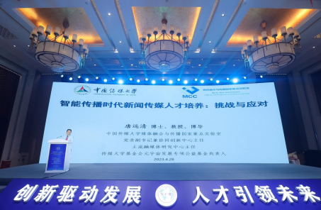 中國傳媒大學(xué)媒體融合與傳播國家重點實驗室黨委副書記兼協(xié)同創(chuàng)新中心主任唐遠清發(fā)表主旨演講