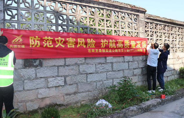 “我們地處浙江南部,受季風影響強烈,洪澇、臺風、雷電、強降雨、洪澇、滑坡、泥石流等災(zāi)害均可能發(fā)生,且發(fā)生的頻率比較高……我們應(yīng)當知曉身邊自然災(zāi)害并掌握避險技能,保證自身和身邊人的安全。”宣傳周首日,項目安環(huán)部緊緊圍繞宣傳周主題召開動員部署會,組織全體職工進行宣誓和簽名,并在項目駐地周邊懸掛宣傳橫幅,張貼宣傳海報、發(fā)放宣傳單等,將防災(zāi)減災(zāi)知識傳達給每個從業(yè)人員,切實保障活動注重效果、不走過場,確保工作取得實效。