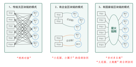 在有國(guó)家級(jí)區(qū)塊鏈的產(chǎn)融協(xié)同中,在星火產(chǎn)融體系下,以國(guó)家級(jí)的區(qū)塊鏈作為公共數(shù)字信任基礎(chǔ)設(shè)施,以開放、共建、共享、標(biāo)準(zhǔn)化的方式,形成了全國(guó)范圍的、可信互聯(lián)的產(chǎn)融協(xié)同網(wǎng)絡(luò)。這種模式下,星火產(chǎn)融改變了此前“小范圍小圈子”的局部局域產(chǎn)融業(yè)態(tài),成功形成大規(guī)模的協(xié)同效應(yīng)。