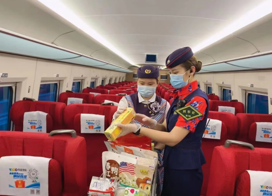 (G1561次列車列車長(zhǎng)劉丹檢查食品安全)