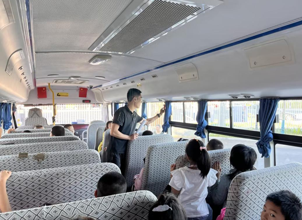 乘坐校車的39名學(xué)生運用老師教給的乘車遇險逃生知識,方法和實際操作要領(lǐng),實地操作,并在老師有序的指揮下,認(rèn)真配合,有序疏散。