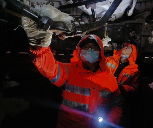 1月22日,受冷空氣影響,贛州地區(qū)寒潮來襲,迎來雨雪天氣。中國鐵路南昌局集團(tuán)有限公司南昌車輛段贛州運用車間以雪為令,聞雪而動,立即啟動應(yīng)急預(yù)案,為列車安全出行保駕護(hù)航。組織黨員、技術(shù)骨干對生產(chǎn)區(qū)域主干道鋪設(shè)防滑麻布,認(rèn)真做好旅客列車上部服務(wù)設(shè)施、制動系統(tǒng)、電伴熱等關(guān)鍵部位的檢查維修,保證春運前夕客車檢修工作平穩(wěn)有序開展,確保旅客列車安全平穩(wěn)運行。 (中國鐵路南昌局集團(tuán)有限公司南昌車輛段贛州運用車間 黃楊林)